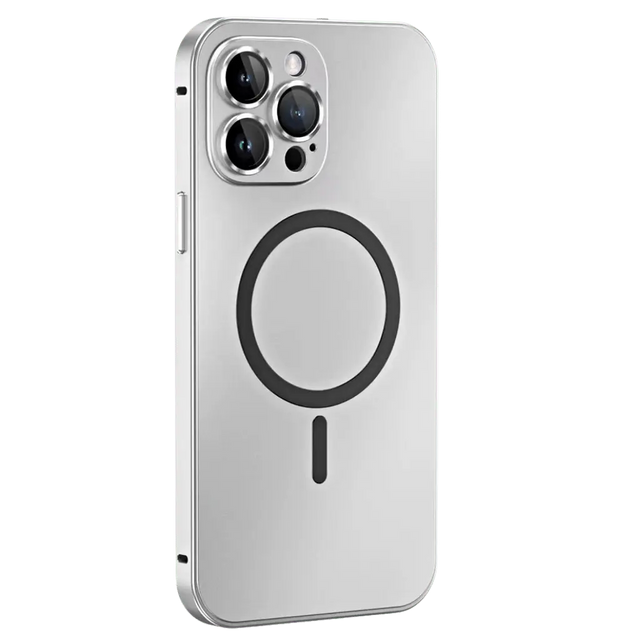 Bescherm je iPhone in stijl met onze magnetische metalen hoes. Deze robuuste, maar slanke hoes biedt maximale bescherming tegen vallen, stoten en krassen zonder in te boeten op elegantie. Dankzij de MagSafe-technologie sluit de hoes perfect aan op je telefoon, terwijl het moderne design je toestel een strakke uitstraling geeft.